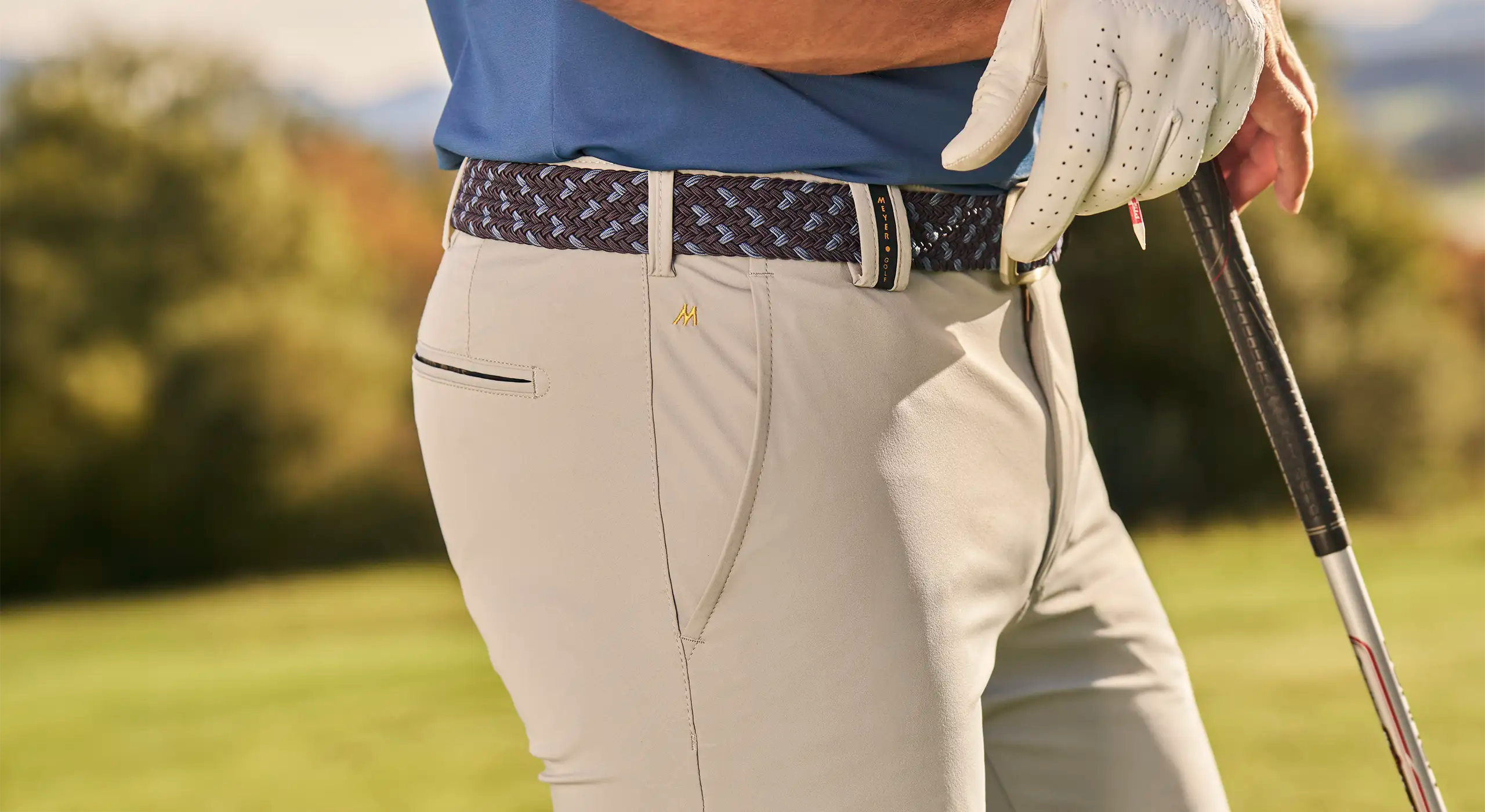 In our own European production facilities, our sewers make golf trousers with the utmost care and expertise for the most discerning of tastes. Modern fits developed by our first-class design centre are combined with outstanding, innovative fabrics. High-quality details, such as the elegant lining, sporty stretch waistband, which guarantees a comfortable and secure fit, and the concealed zip-up security pocket are a testament to the exclusivity of our MEYER golf trousers.